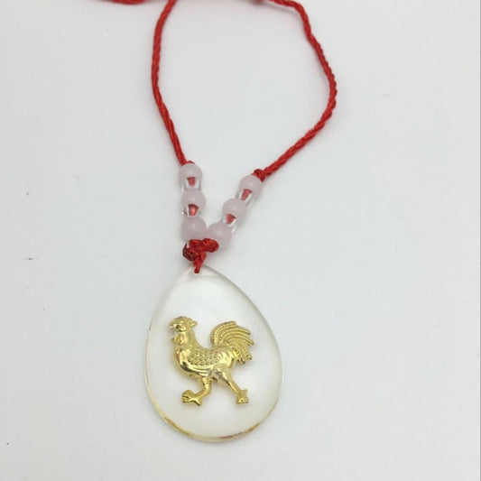 Red Long Rope Necklace Crystal Glass Ball Gold Plated Chicken Necklace