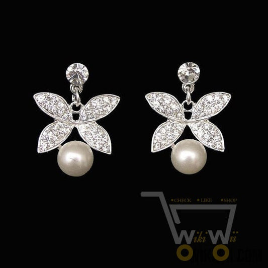 Rhinestone Pearl Butterfly Necklace & Earring