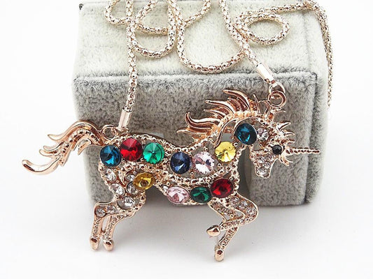 Rose Gold Plated Multi-Color Crystal Horse Necklaces