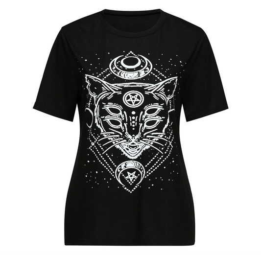 SAVE 48%Star Punk Gothic Cat Black T-Shirt