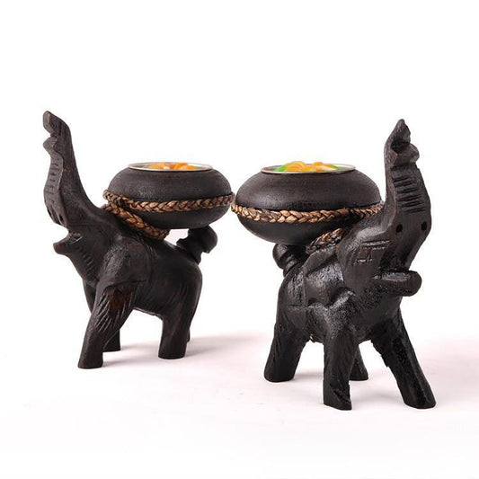 Thailand Wooden Elephant Candle Holder