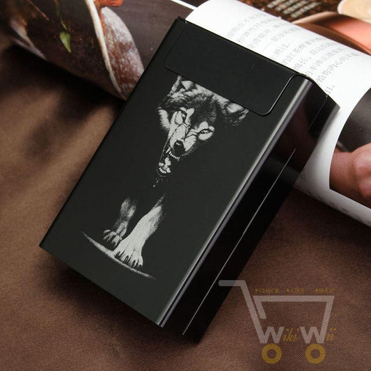 Black Wolf Metal Cigarette Case- Automatic Cigarette Holder