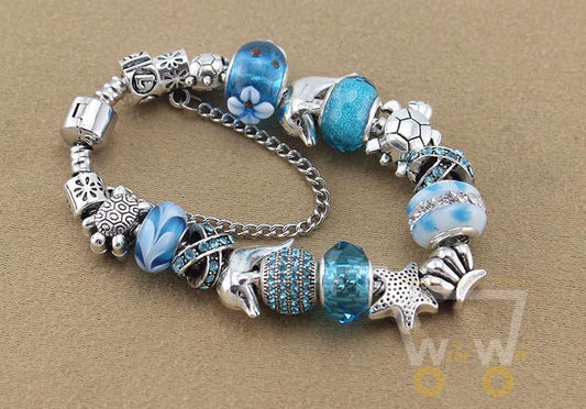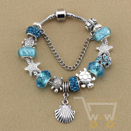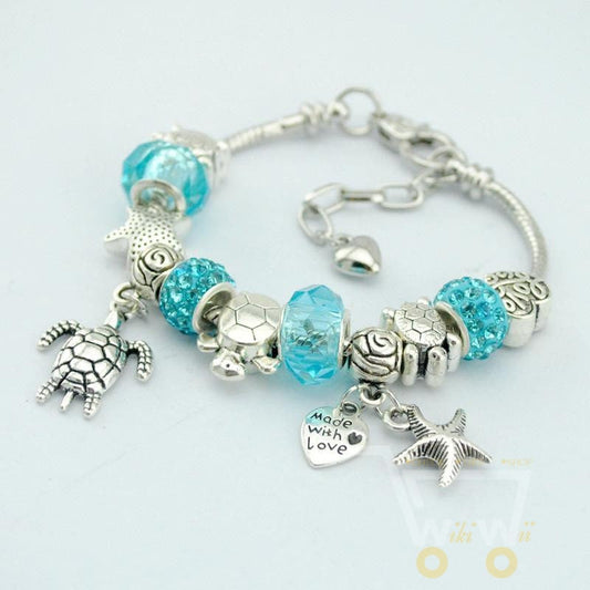 Blue Charm Bracelet Sea horse // Sea turtle