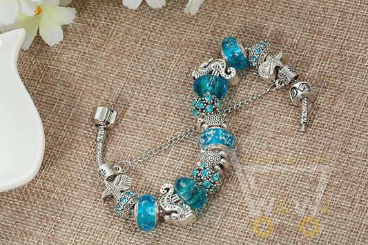 Blue Beads Bracelet Starfish / Sea Turtle / Dolphin / Sea Horse