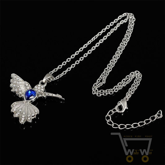 SAVE 20%Blue Rhinestone Hummingbird Necklace