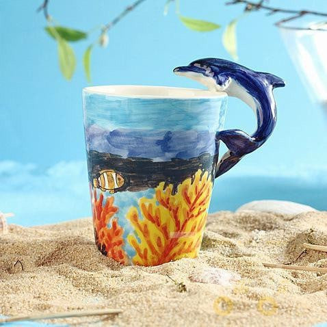 Creative Hand Painting Ocean 3D Dolphin Mug