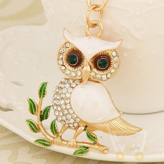 Creative Olive Branch Enamel Owl Key chain 14 kg gold plated