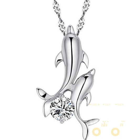 Dolphin pendant crystal necklaces white gold plated Romantic necklace