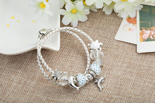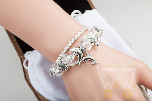DOLPHINS CHARM BRACELET WHITE LEATHER "2"