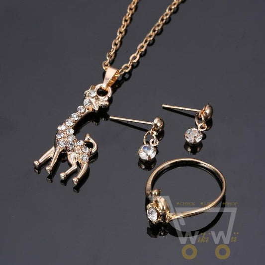 Gold Plated Giraffe Necklaces Rings Earrings Jewelry Set