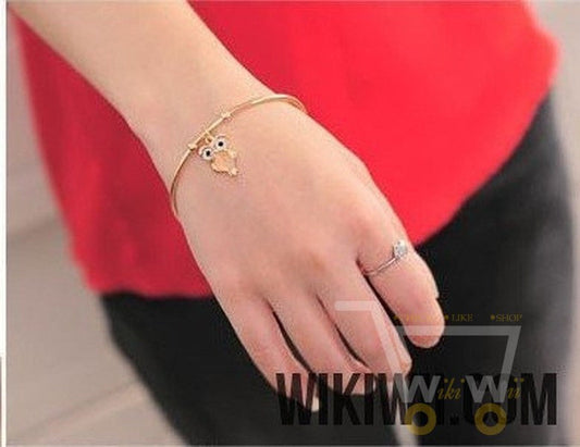 Gold Plated Rhinestone Owl Cuff Bracelets