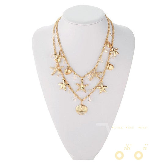 Gold/Silver Plated Multilayer Starfish Shell Necklace
