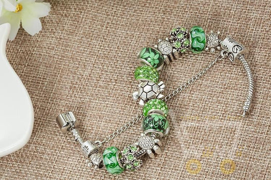 Green Beads Starfish /Butterfly /Turtle Charm Bracelet