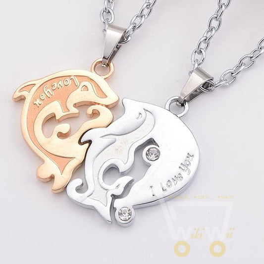 I Love U Dolphin Matching Heart Paired Pendants Necklaces