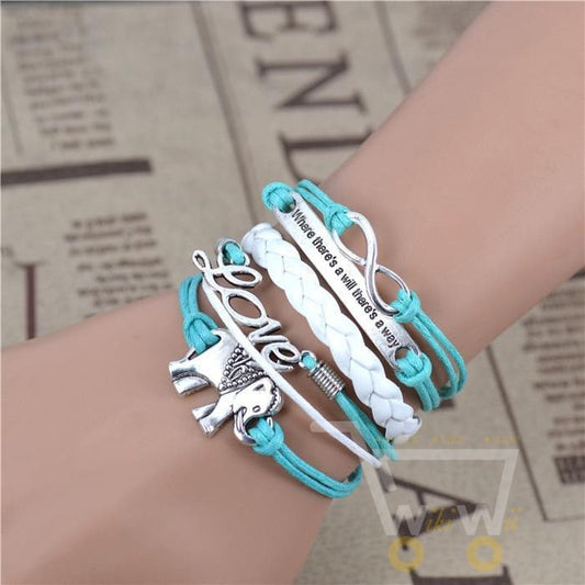 Infinity Owl Giraffe Key Friendship Leather Charm Bracelet