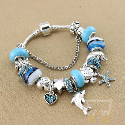Ocean Style Blue Crystal charm Bracelet
