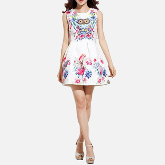 Owl Print Dress Ladies Elegant Party Evening Mini Dress