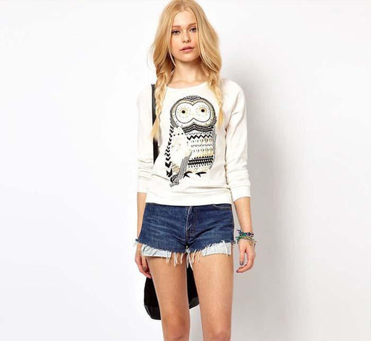 Owl Print Women Cotton Blended Cartoon Blouse