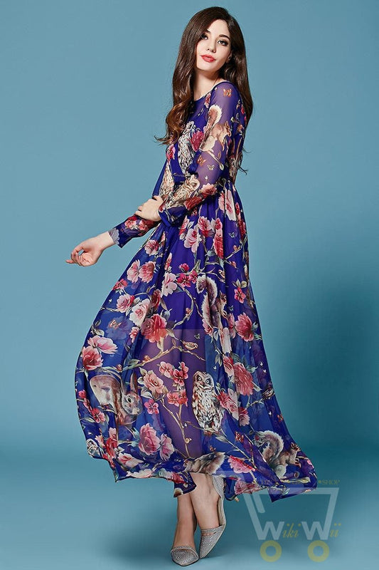 SAVE 42%Owl Printed Elegant Long Dress