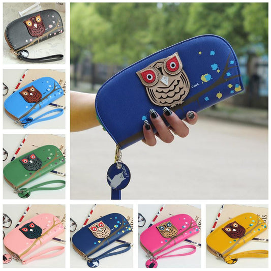 Owl Printing Rounded Zipper Long Wallet